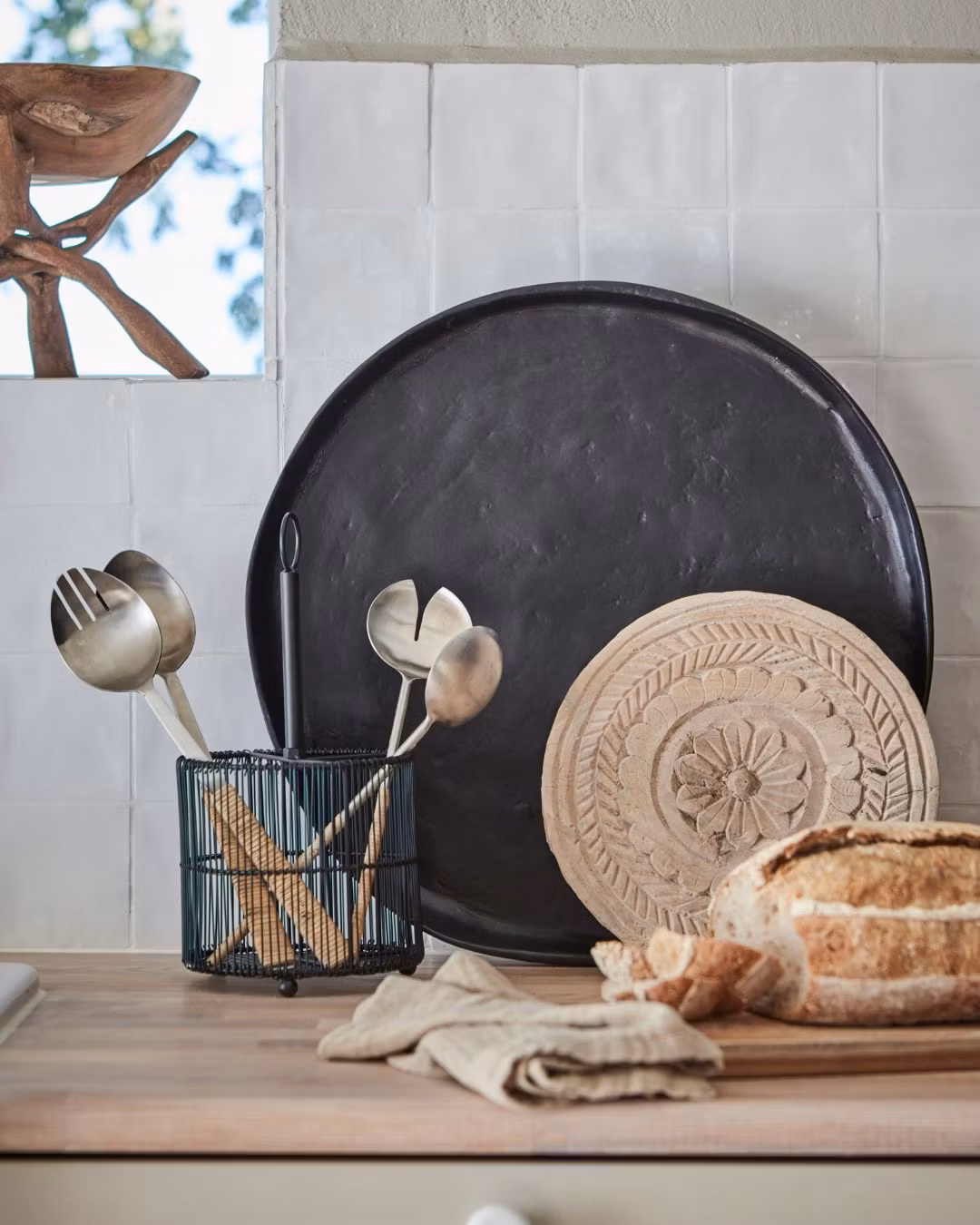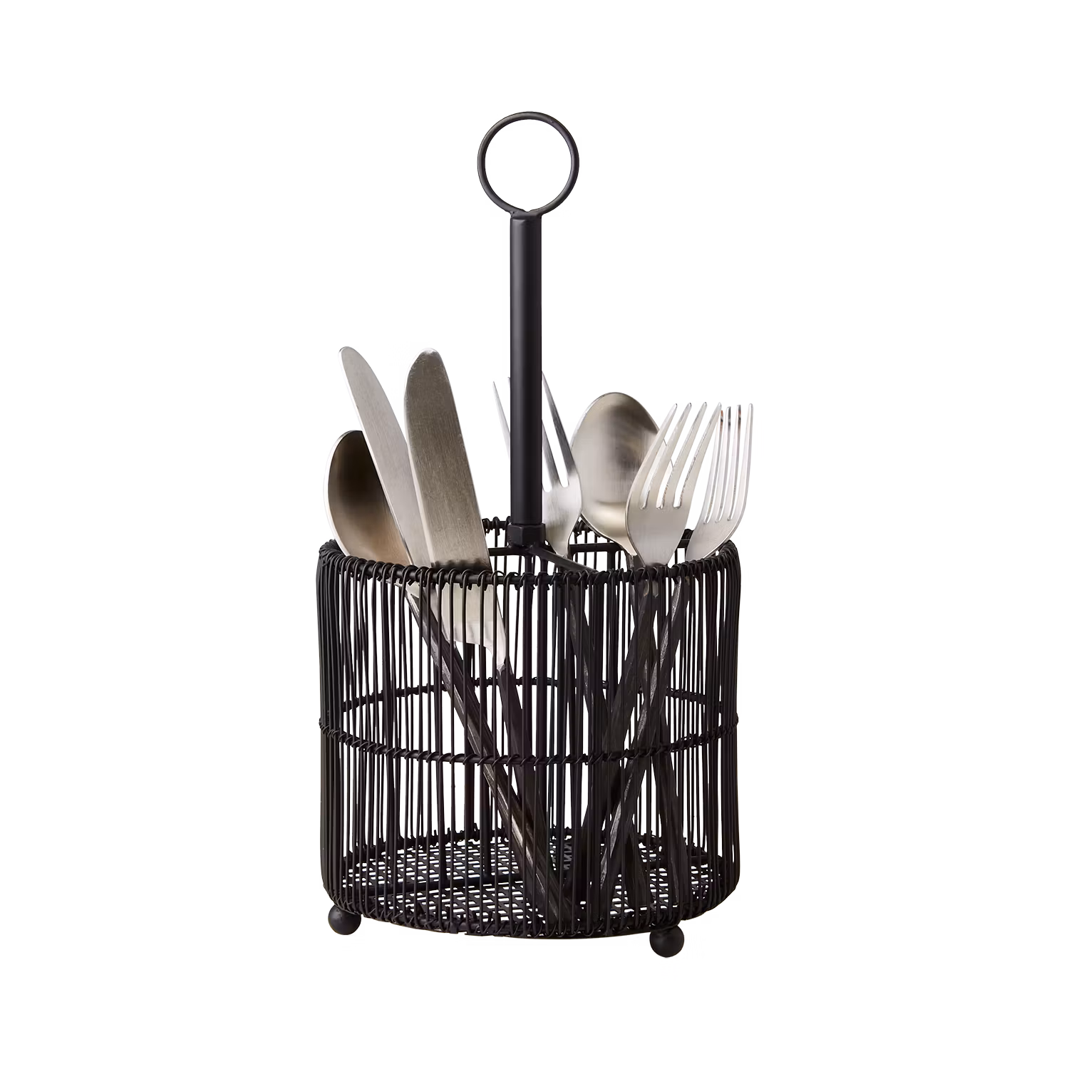 Bestickställ i svart, ger en praktisk och dekorativ lösning för att organisera bestick i köket.