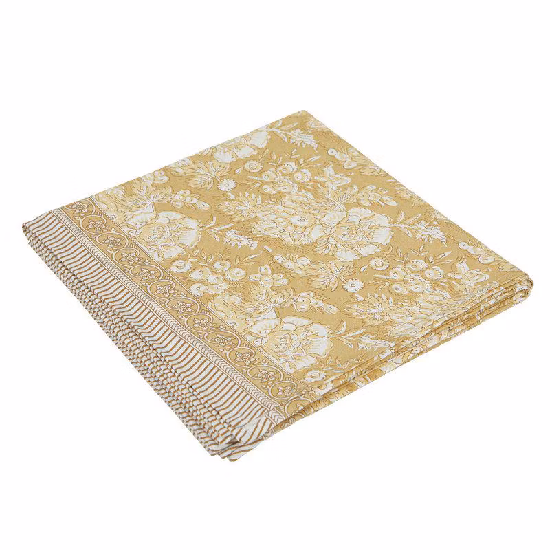 Dekorativ bomullsduk med vackert mönster och akrylatbehandlad yta – vattenavstötande och avtorkningsbar, men mjukare och mer tyglik än vaxduk.