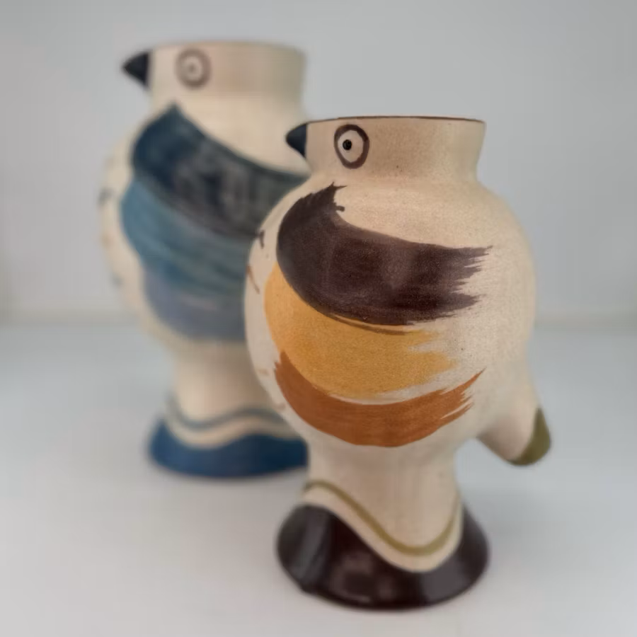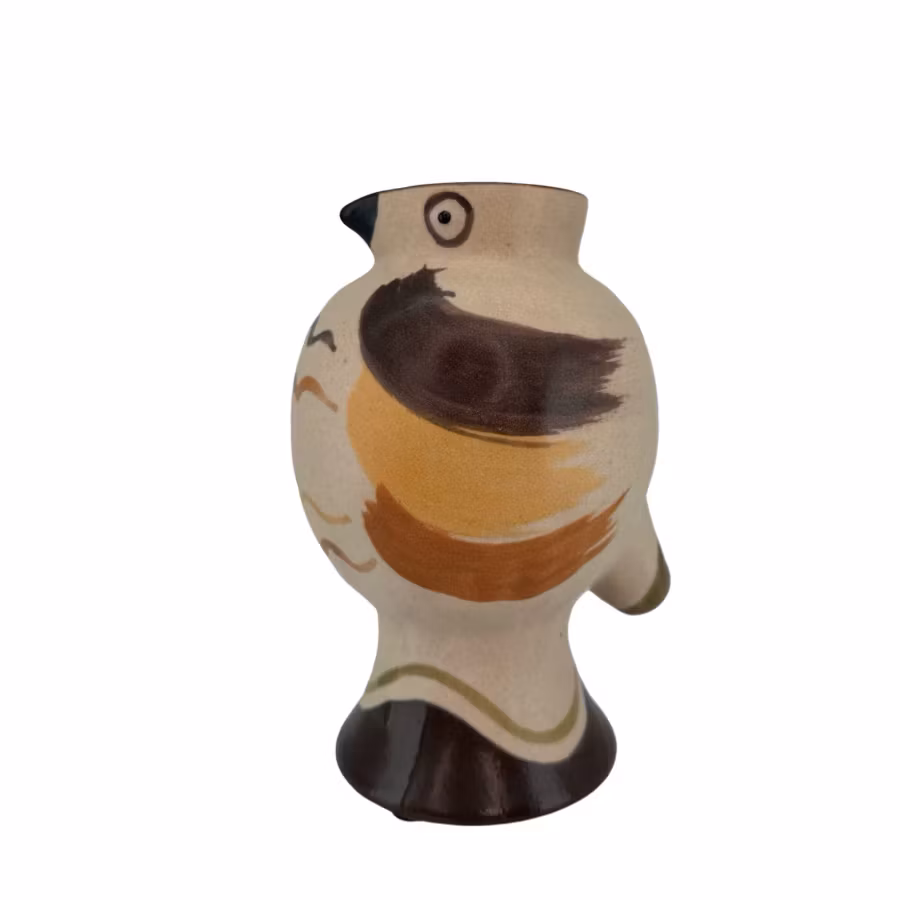 Vas med ett vackert fågelmotiv i mjuka, jordnära toner. Varje vas är handmålad och ger en unik känsla.