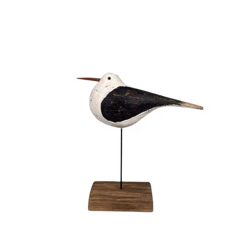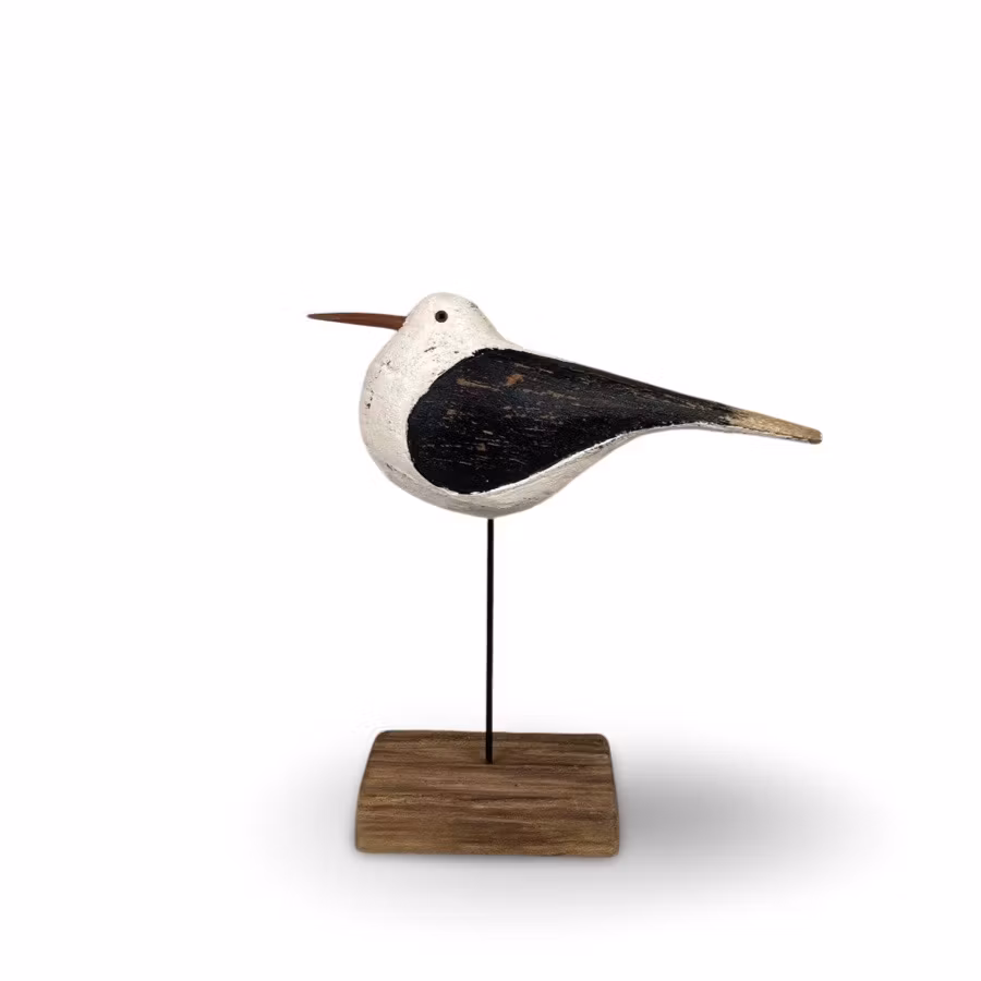 Dekorationsfågel tillverkad i trä i svart/vit, i en mindre modell.