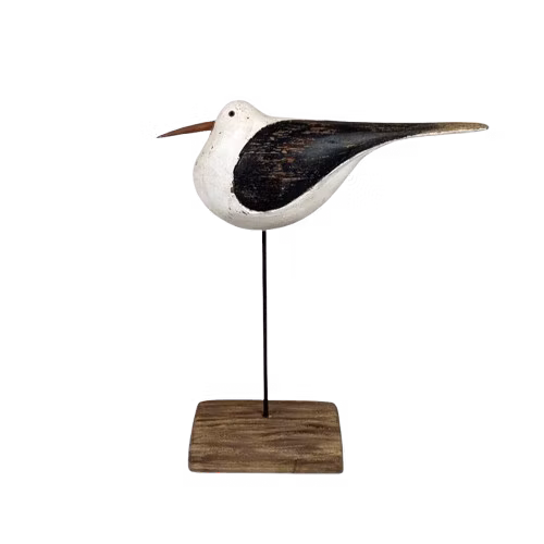 Dekorationsfågel tillverkad i trä i svart/vit, i en större modell.