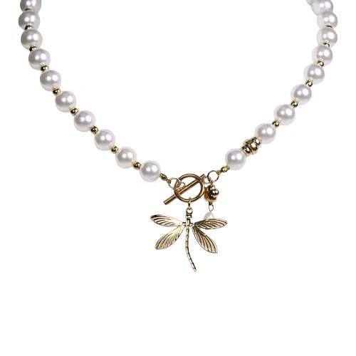 Halsband i rostfritt stål från The Moshi med pärlor och trollsländeberlock.