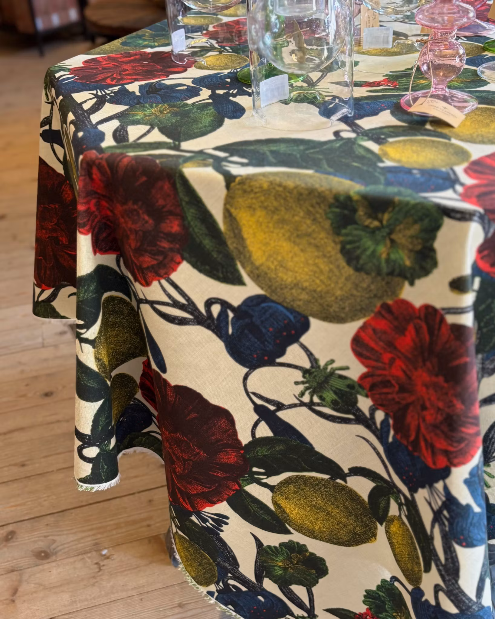 Detta dekorativa tyg är en hyllning till Italiens skönhet och är formgivet av Studio Lisa Bengtsson. Med frodiga blommor, frukter och en liten gömd insekt kombineras lekfull design med elegant charm. Perfekt till gardiner, kuddar, möbelöverdrag eller andra inredningsdetaljer som skapar ett levande och personligt hem.